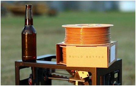 從食物到飲品,啤酒可謂功能多樣。美國纖維生產商3Dom,因其基于咖啡和麻的生物材料而著稱。最近他們研發(fā)了一種用啤酒制成的長纖維。急速運行的長纖維有啤酒的天然色彩,主要原料是PLA和啤酒釀造過程中產生的廢渣。3D-Fuel上售賣的500g/卷長纖維價格為39.99美元(約32英鎊)。現(xiàn)在你能用啤酒來制作啤酒杯,這多么不可思議!